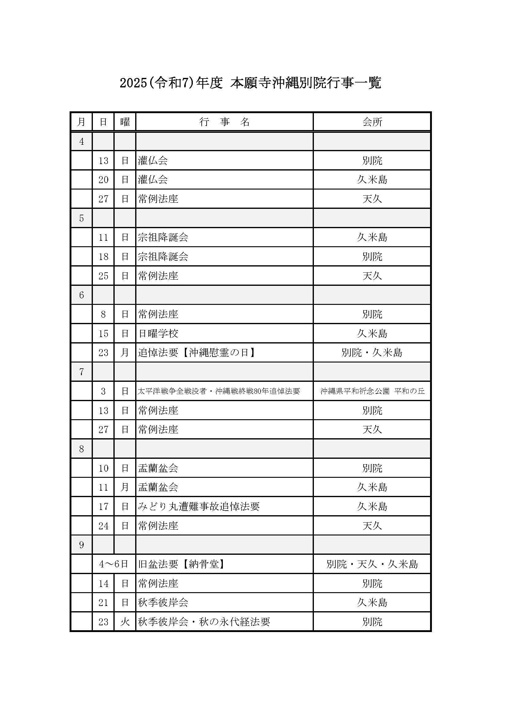 - 2025/10/25 お寺だより「おきなわ」を更新しました。